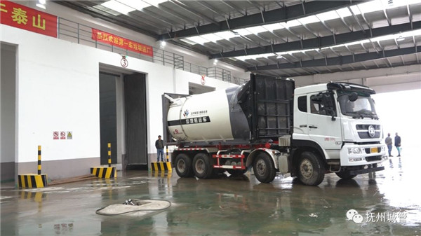 在項目主體樓三樓,隨著市城管執(zhí)法局主要領(lǐng)導(dǎo)尚江黎宣布垃圾車入場并按下三號門啟動按鈕,六輛來自金溪縣的生活垃圾裝載車緩緩駛?cè)搿?/p>