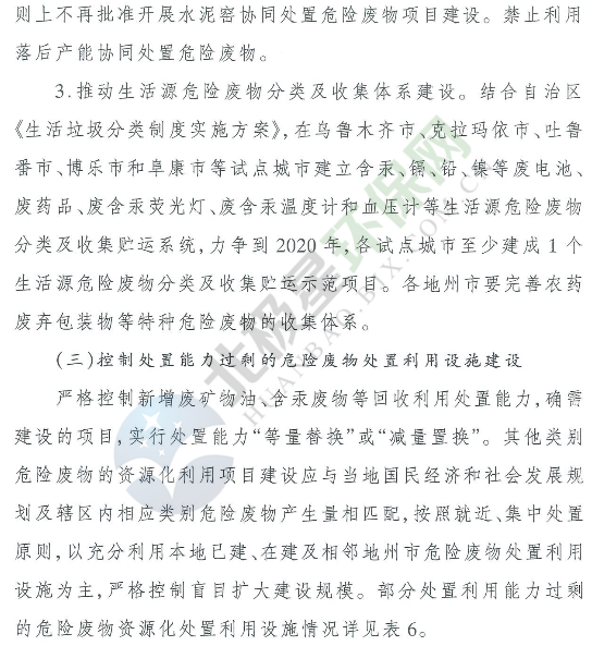 新疆提出,到2020年底,全區(qū)危險(xiǎn)廢物集中處置利用能力達(dá)到200萬噸/年,2023年底達(dá)到230萬噸/年。