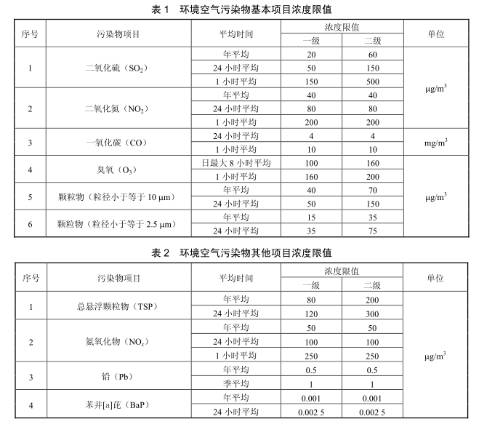 第4.2條:環(huán)境空氣功能區(qū)質(zhì)量要求:一類區(qū)適用一級(jí)排放濃度限值,二類區(qū)適用二級(jí)濃度排放限值。一、二類區(qū)環(huán)境空氣功能區(qū)質(zhì)量要求見表1和表2: