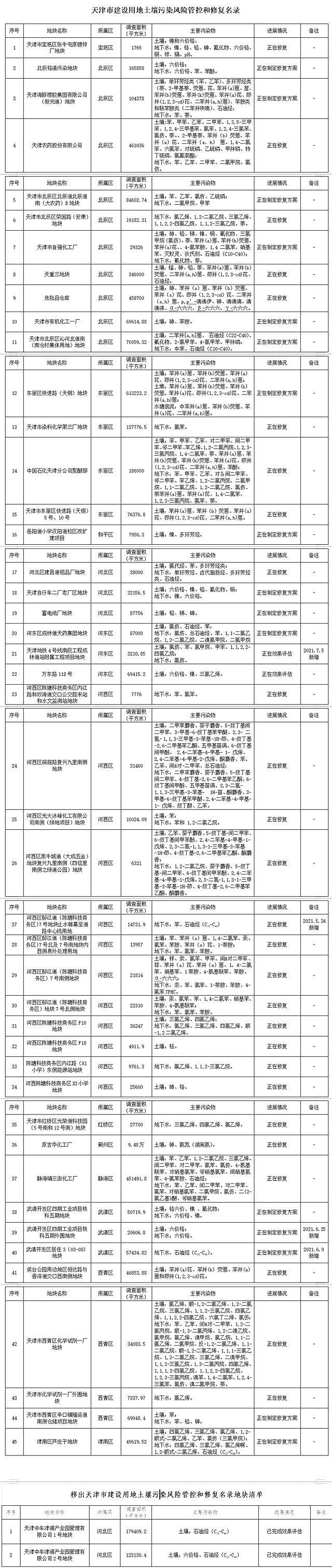 市生態(tài)環(huán)境局 市規(guī)劃資源局關(guān)于更新發(fā)布《天津市建設(shè)用地土壤污染 風(fēng)險管控和修復(fù)名錄》的通知各區(qū)生態(tài)環(huán)境局、規(guī)劃資源分局: 為貫徹落實《中華人民共和國土壤污染防治法》、《天津市土壤污染防治條例》,加強我市建設(shè)用地土壤環(huán)境管理,實行建設(shè)用地土壤污染風(fēng)險管控和修復(fù)名錄制度,根據(jù)我市建設(shè)用地地塊風(fēng)險評估和治...