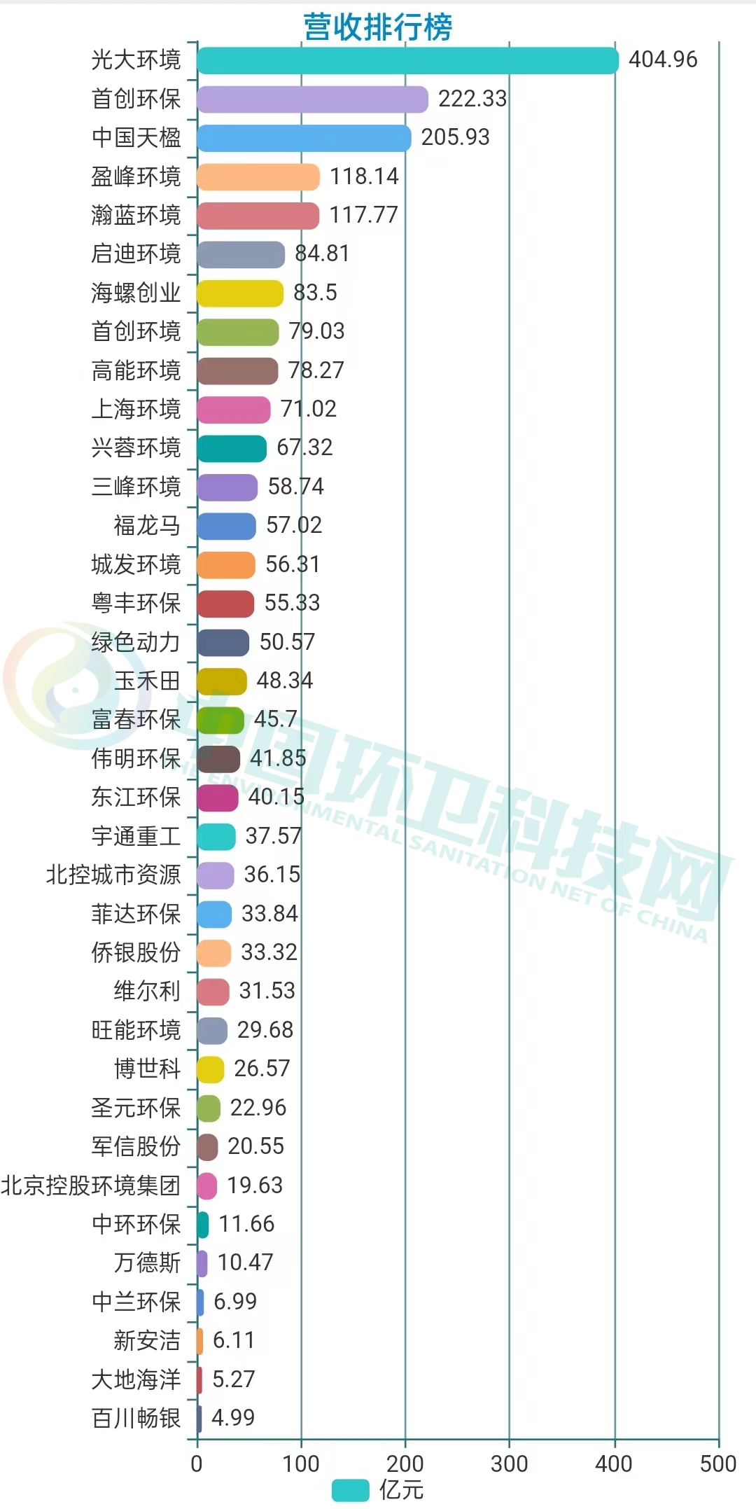 36家企業(yè)中,光大環(huán)境以404.96億的業(yè)績(jī)領(lǐng)跑營(yíng)收榜,首創(chuàng)環(huán)保、中國(guó)天楹和盈峰環(huán)境緊隨其后。光大環(huán)境為中國(guó)光大集團(tuán)股份公司骨干企業(yè),香港聯(lián)交所主板上市公司。2003年轉(zhuǎn)型環(huán)境領(lǐng)域以來(lái),光大環(huán)境已逐步成長(zhǎng)為中國(guó)最大環(huán)境企業(yè)、亞洲環(huán)保領(lǐng)軍企業(yè)、全球最大垃圾發(fā)電投資運(yùn)營(yíng)商及世界知名環(huán)境集團(tuán)。年報(bào)披露,2...