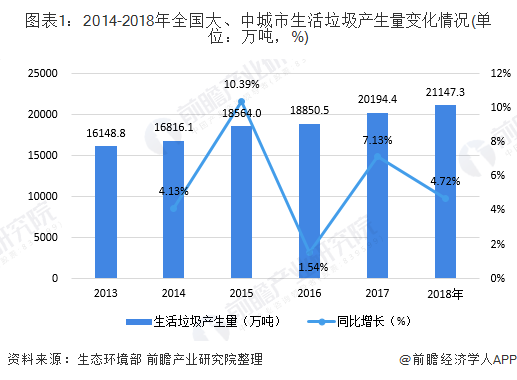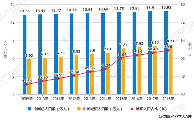 伴隨我國城鎮(zhèn)化水平提高,城鎮(zhèn)人口10年內增速達40.43%,2000年,我國總人口數(shù)為12.67億人,其中城鎮(zhèn)人口為4.59億人,截至2018年末,我國總人口13.95億,城鎮(zhèn)人口8.31億人,其中城鎮(zhèn)人口占比為59.60%,這給城鎮(zhèn)生活環(huán)境帶來了極大壓力,尤其是城鎮(zhèn)生活垃圾的處理。 2009-20...