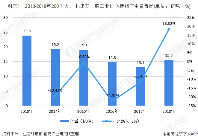 一般工業(yè)固廢的產(chǎn)量占比在固廢廢物總量八成以上,一般工業(yè)固廢的產(chǎn)量趨勢幾乎決定著固廢的整體走向。近年來,一般工業(yè)固廢的貯存待處理量上漲較快,截至2018年底200個大、中城市一般工業(yè)固體廢物貯存量達到8.1億噸。 一般工業(yè)固體廢棄物產(chǎn)量有所回升 工業(yè)固廢處理是我國固廢處理行業(yè)的重要組成部分,工業(yè)固廢分...