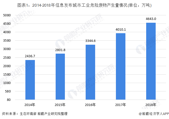 根據(jù)《中華人民共和國固體廢物污染環(huán)境防治法》的規(guī)定,危險廢物是指列入國家危險廢物名錄或者根據(jù)國家規(guī)定的危險廢物鑒別標準和鑒別方法認定的具有危險特性的固體廢物。隨著工業(yè)的發(fā)展,工業(yè)生產(chǎn)過程排放的危險廢物日益增多。 工業(yè)危險廢物產(chǎn)生量逐年攀升 山東煙臺產(chǎn)量最多 根據(jù)生態(tài)環(huán)境部發(fā)布的《全國大、中城市固體廢...