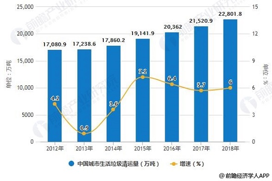 一、生活垃圾產(chǎn)量保持5%的增速 隨著垃圾分類在全國各個(gè)地區(qū)的推進(jìn),垃圾處理行業(yè)也愈發(fā)壯大。根據(jù)國家統(tǒng)計(jì)局和OECD數(shù)據(jù)顯示,近幾年我國生活垃圾產(chǎn)量保持5%左右的增長,2018年全國生活垃圾清運(yùn)量達(dá)到2.28億噸,當(dāng)前中國已超過美國,成為全球產(chǎn)生垃圾最多的國家。在過去全國生活垃圾清運(yùn)量始終高于無害化處...