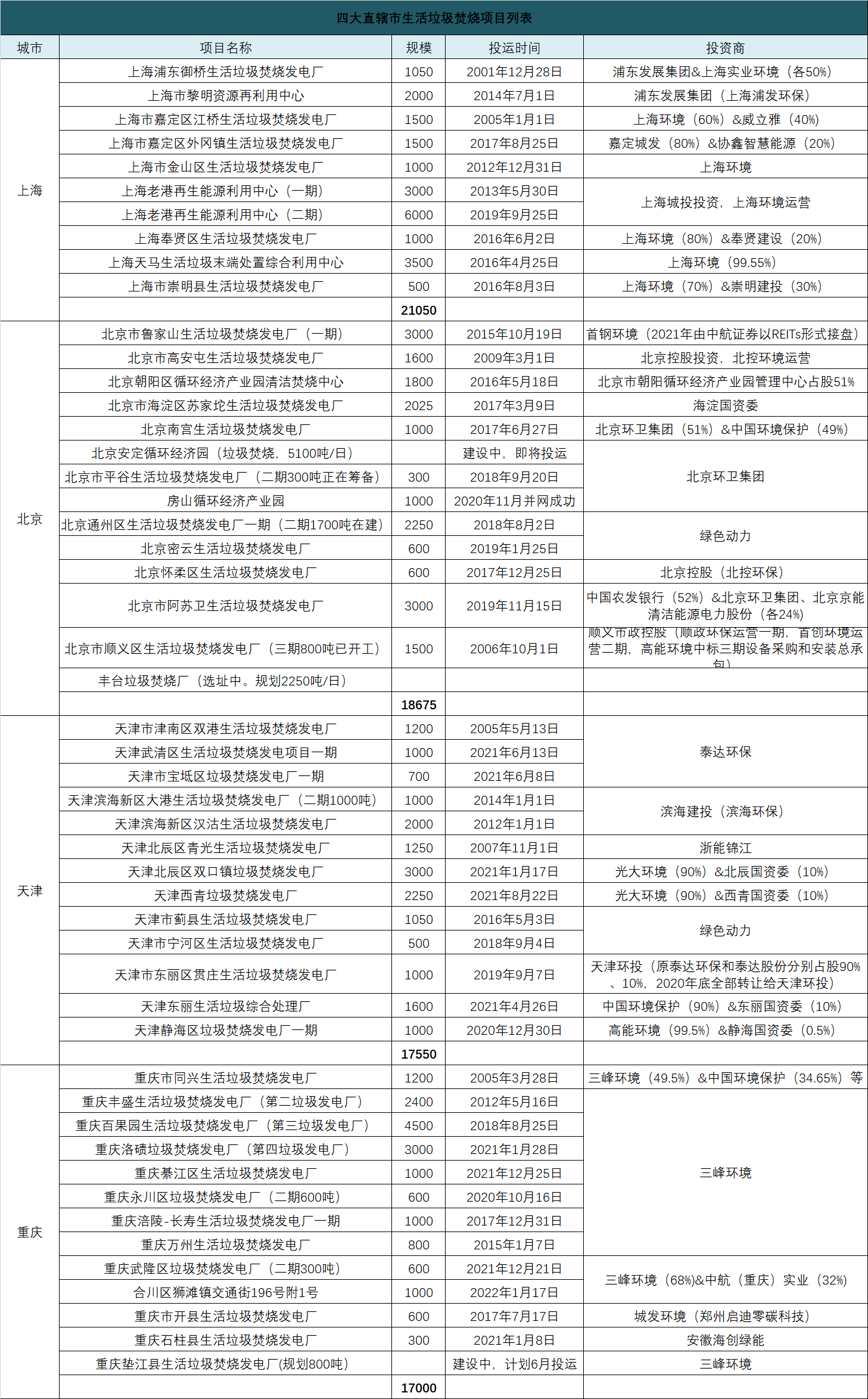 上周作者統(tǒng)計了廣東省生活垃圾焚燒市場:廣東以全省日投運11.3萬噸的規(guī)模雄踞全國各省市第一。這里,作者根據(jù)生態(tài)環(huán)境部裝樹聯(lián)數(shù)據(jù)統(tǒng)計了國內(nèi)四大直轄市的生活垃圾焚燒情況,結(jié)果顯示,四市已投運項目日處理總規(guī)模為79375噸,四個城市分別為:上海21050噸、北京18675噸、天津17550噸、重慶1700...
