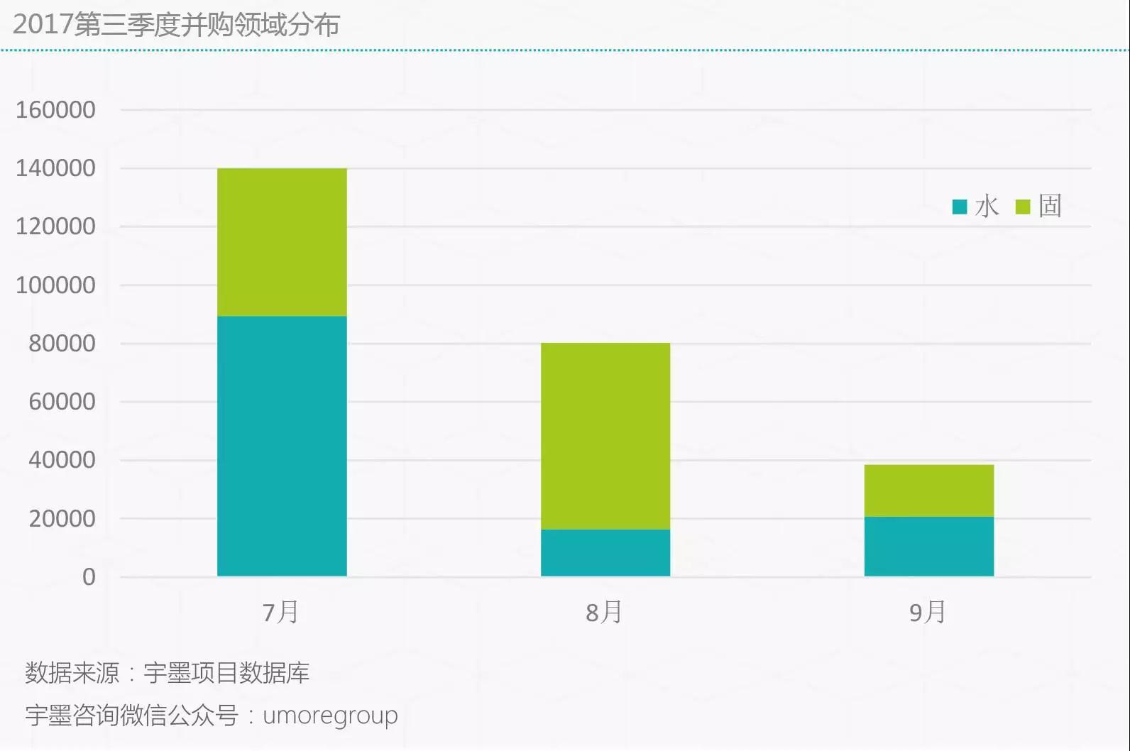 本文旨在用幾組數(shù)據(jù)對(duì)過(guò)去三個(gè)月的并購(gòu)市場(chǎng)做一個(gè)簡(jiǎn)單的回顧,作為讀者判斷下半年趨勢(shì)的參考。持續(xù)整合國(guó)內(nèi)環(huán)保并購(gòu)市場(chǎng)的主流依然是水處理與,但是2017年第三季度,水處理領(lǐng)域不管在數(shù)目還是涉及金額方面都趨于低迷。相比而言,固廢處置已然成為當(dāng)前并購(gòu)市場(chǎng)穩(wěn)定而強(qiáng)勁的組成部分。原因在前兩個(gè)月的地圖分析得非常清楚...