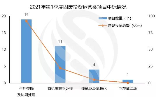 內(nèi)容概覽: E20研究院數(shù)據(jù)中心對(duì)2021年第1季度固廢投資運(yùn)營市場(chǎng)進(jìn)行盤點(diǎn): (1)E標(biāo)通(信息來源:全國各級(jí)政府采購網(wǎng)/公共資源交易平臺(tái))獲悉,2021年第1季度,固廢招投標(biāo)市場(chǎng)共計(jì)釋放35個(gè)固廢投資運(yùn)營類項(xiàng)目,新增建設(shè)投資總額約120.4億元。 (2)2021年第1季度共計(jì)釋放19個(gè)生活垃圾焚...