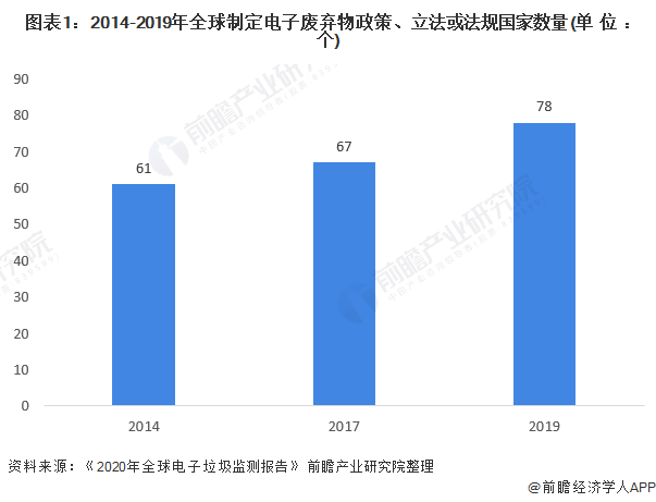 2019年,得到正式記錄的收集和回收利用量為930萬噸,為所產(chǎn)生電子廢棄物的17.4%。自2014年以來,電子廢棄物回收量增長180萬噸,年均增長近40萬噸。然而,電子廢棄物的總產(chǎn)生量增加了920萬噸,每年增長近200萬噸。因此,電子廢棄物回收活動(dòng)全然趕不上其在全球的增長速度。 立法國家數(shù)量較少,行...