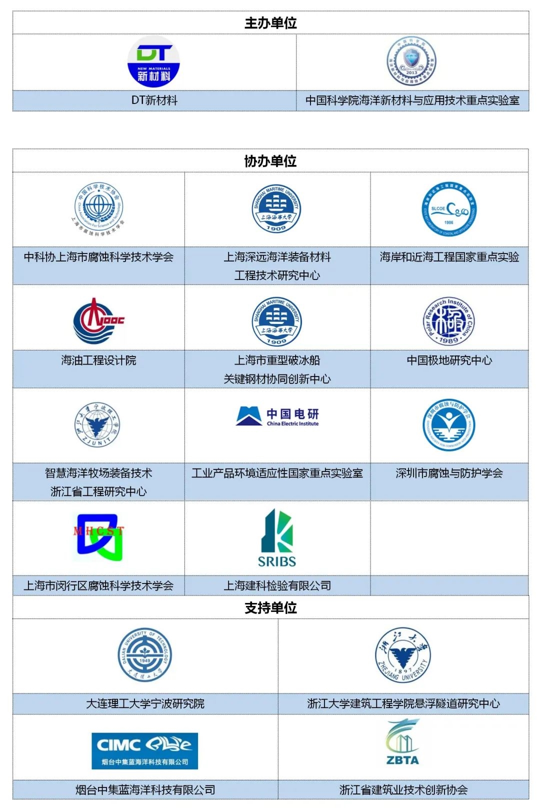 由中國(guó)科學(xué)院海洋新材料與應(yīng)用技術(shù)重點(diǎn)實(shí)驗(yàn)室、DT新材料主辦,中科協(xié)上海市腐蝕科學(xué)技術(shù)學(xué)會(huì)、海油工程設(shè)計(jì)院、上海深遠(yuǎn)海洋裝備材料工程技術(shù)研究中心、中國(guó)極地研究中心、工業(yè)產(chǎn)品環(huán)境適應(yīng)性國(guó)家重點(diǎn)實(shí)驗(yàn)室、海岸和近海工程國(guó)家重點(diǎn)實(shí)驗(yàn)、智慧海洋牧場(chǎng)裝備技術(shù)浙江省工程研究中心、上海市閔行區(qū)腐蝕科學(xué)技術(shù)學(xué)會(huì)、浙江大...