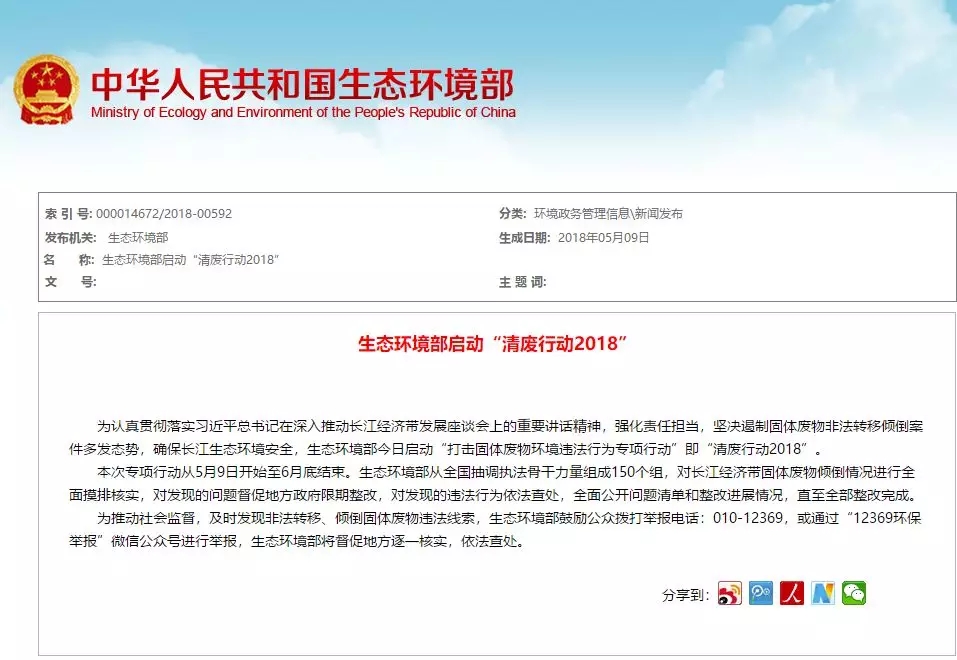 為遏制長江流域固體廢物非法轉(zhuǎn)移傾倒案件多發(fā)態(tài)勢,及時消除環(huán)境安全隱患,保障長江生態(tài)環(huán)境安全,生態(tài)環(huán)境部決定組織開展打擊固體廢物環(huán)境違法行為專項行動。從有關(guān)?。▍^(qū)、市)環(huán)保系統(tǒng)抽調(diào)人員,組成150個專項行動督查組,對長江經(jīng)濟(jì)帶11?。ㄊ校?400多個固體廢物堆存點位進(jìn)行現(xiàn)場核查督導(dǎo)。這場名為“清廢行動...