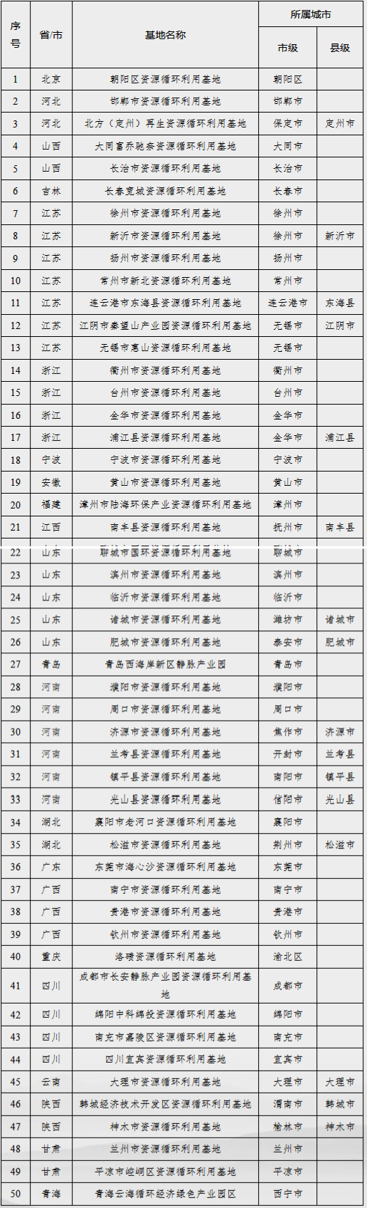 日前國家發(fā)展改革委資源節(jié)約和環(huán)境保護司發(fā)布了關于成都市長安靜脈產業(yè)園等50家單位基地實施方案的復函,并公布了建設單位名單,共50個單位。具體內容如下:國家發(fā)展改革委辦公廳 住房城鄉(xiāng)建設部辦公廳關于成都市長安靜脈產業(yè)園等50家單位資源循環(huán)利用基地實施方案的復函根據《關于推進資源循環(huán)利用基地建設的指導意...