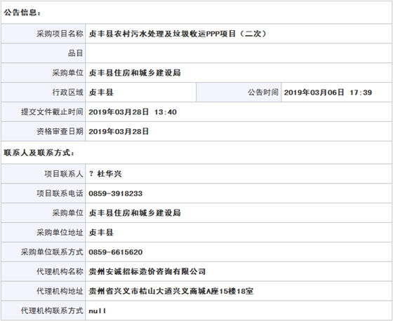 導(dǎo)讀:貞豐縣農(nóng)村污水處理及垃圾收運(yùn)PPP項(xiàng)目(二次)資格預(yù)審公告1、項(xiàng)目名稱:貞豐縣農(nóng)村污水處理及垃圾收運(yùn)PPP項(xiàng)目(二次)2、項(xiàng)目編號:州公易采【201809】-255號3、項(xiàng)目序列號:州公易采【201809】-255號4、項(xiàng)目聯(lián)系人:杜華興5、項(xiàng)目聯(lián)系電話:0859-39182336、采購方式:...