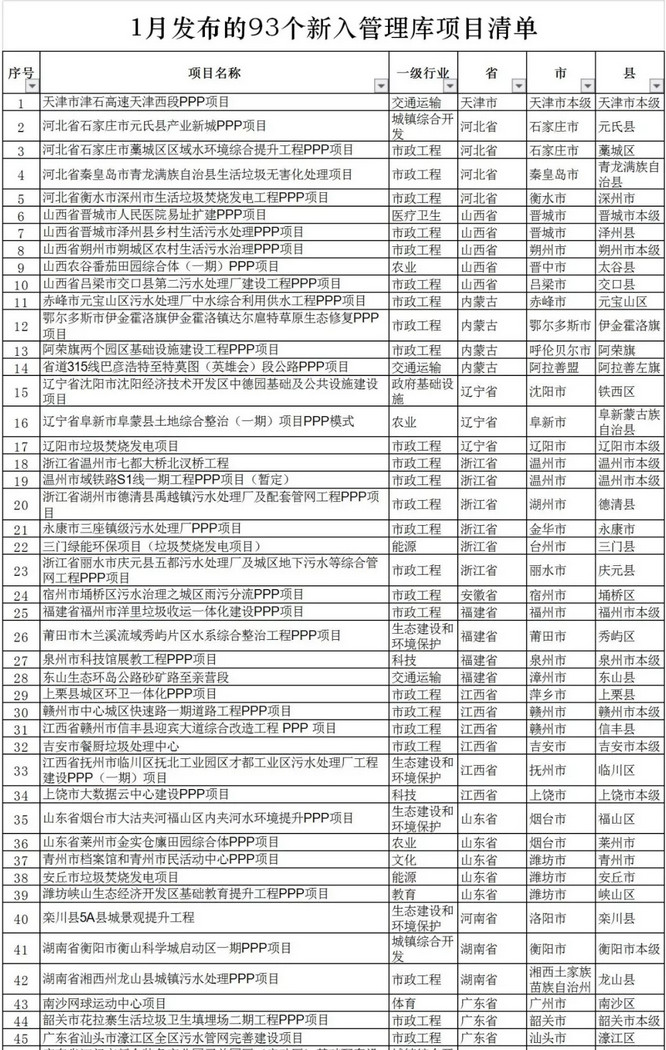 財(cái)政部PPP中心發(fā)布2019年1月納入全國(guó)PPP綜合信息平臺(tái)項(xiàng)目管理庫(kù)的項(xiàng)目清單。清單中涉及垃圾焚燒發(fā)電及污水處理等環(huán)保PPP項(xiàng)目。詳情如下: