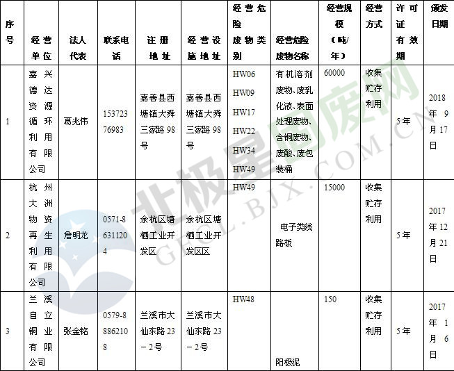 浙江省危險廢物經(jīng)營單位名單(2019年1月22日更新)