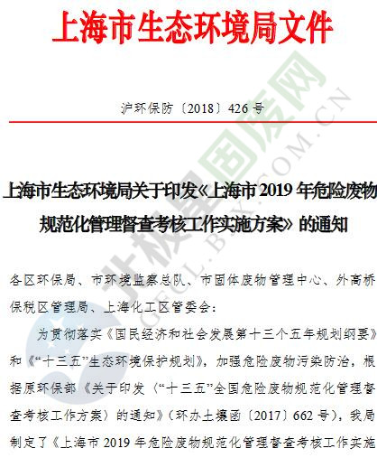近日,上海市生態(tài)環(huán)境局發(fā)布了上海市2019年危險廢物規(guī)范化管理督查考核工作實施方案,《方案》明確了危險廢物規(guī)范化管理督查考核工作評級指標,詳情如下: