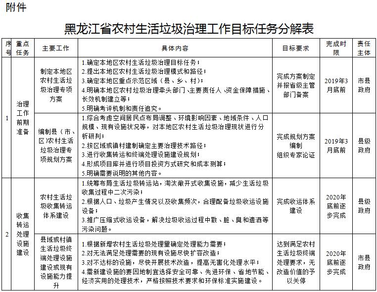 日前,黑龍江省發(fā)布了《黑龍江省農(nóng)村生活垃圾治理專項(xiàng)實(shí)施方案(2018—2020年)》《黑龍江省農(nóng)村室內(nèi)戶廁改造及室外公共廁所建設(shè)專項(xiàng)實(shí)施方案(2018—2020年))》和《黑龍江省農(nóng)村室外衛(wèi)生戶廁改造三年行動(dòng)專項(xiàng)實(shí)施方案(2018—2020年)》,詳情如下:黑龍江省人民政府辦公廳關(guān)于印發(fā)黑龍江省農(nóng)村...