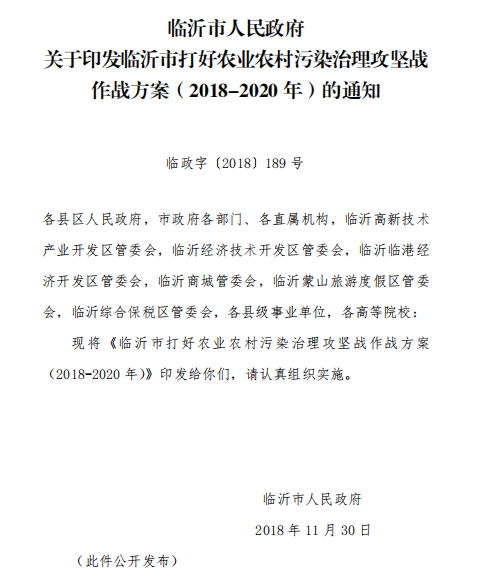 近日,臨沂市人民政府發(fā)布關(guān)于印發(fā)臨沂市打好農(nóng)業(yè)農(nóng)村污染治理攻堅(jiān)戰(zhàn)作戰(zhàn)方案(2018-2020年)的通知,方案要求,到2020年,全市農(nóng)村人居環(huán)境明顯改善,基本實(shí)現(xiàn)村莊規(guī)劃編制、生活垃圾收運(yùn)處置、無(wú)害化衛(wèi)生廁所改造全覆蓋,生活污水處理率大幅提高,村容村貌明顯改觀。詳情如下:
