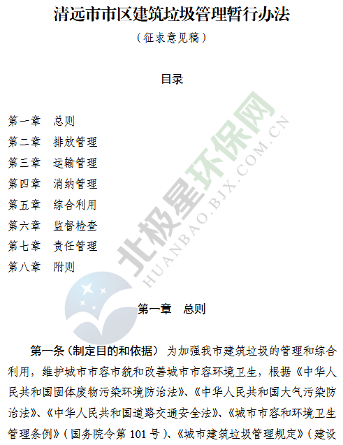 廣東省清遠市制定了《清遠市市區(qū)建筑垃圾管理暫行辦法》(征求意見稿)。隨著經(jīng)濟的快速發(fā)展、城市化進程的加快以及我市城市建設工作的全面推進,建筑垃圾產(chǎn)生量逐年增長,建筑垃圾處置需求不斷增加,管理工作難度日益加大,各類矛盾較為突出,特別是施工工地建筑渣土作業(yè)中產(chǎn)生的揚塵污染,建筑垃圾運輸中產(chǎn)生的道路污染、...