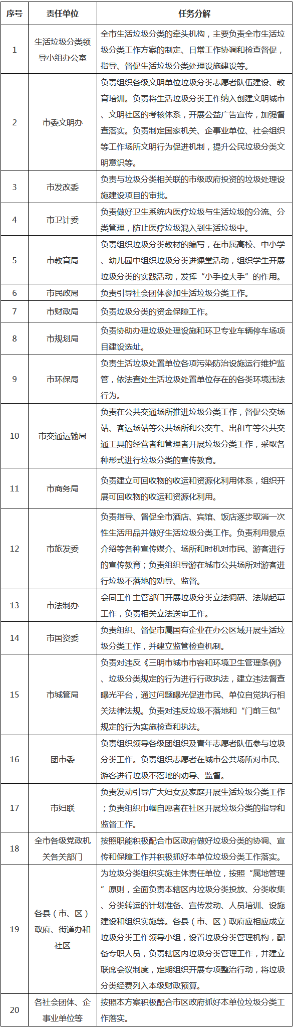 日前三明市政府發(fā)布了《三明市人民政府辦公室關(guān)于印發(fā)三明市生活垃圾分類(lèi)工作實(shí)施方案的通知》,下面來(lái)了解一下詳細(xì)內(nèi)容:三明市人民政府辦公室關(guān)于印發(fā)三明市生活垃圾分類(lèi)工作實(shí)施方案的通知各縣(市、區(qū))人民政府,市直各單位:《三明市生活垃圾分類(lèi)工作實(shí)施方案》已經(jīng)市政府研究同意,現(xiàn)印發(fā)給你們,請(qǐng)認(rèn)真遵照?qǐng)?zhí)行。三...