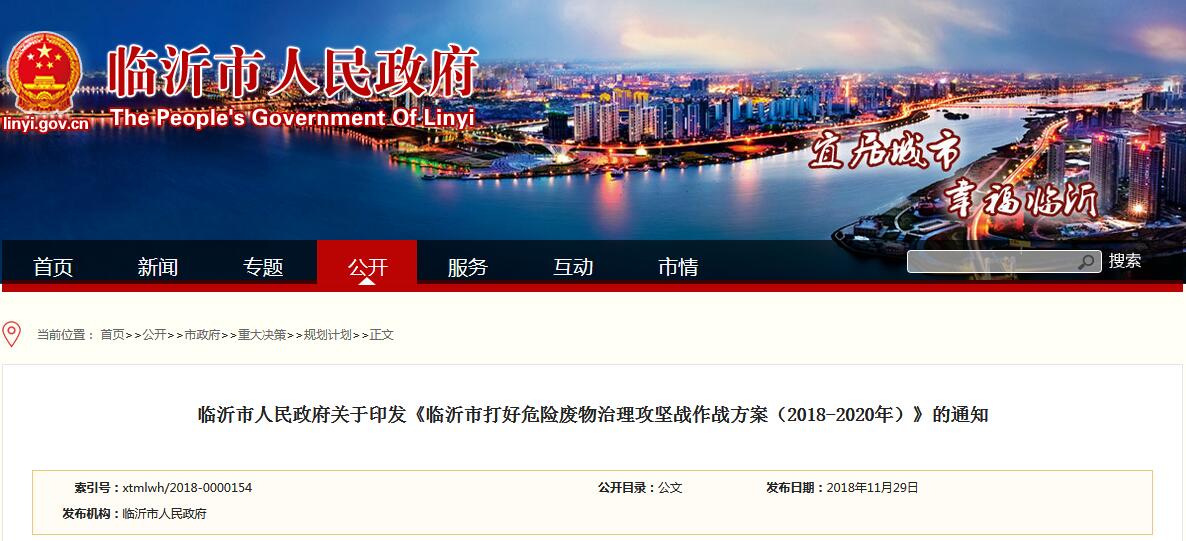 日前,山東臨沂印發(fā)《臨沂市打好危險廢物治理攻堅戰(zhàn)作戰(zhàn)方案(2018-2020年)》,詳情如下:臨沂市人民政府關(guān)于印發(fā)《臨沂市打好危險廢物治理攻堅戰(zhàn)作戰(zhàn)方案(2018-2020 年)》的通知臨政字〔2018〕183 號各縣區(qū)人民政府,市政府各部門、各直屬機構(gòu),臨沂高新技術(shù)產(chǎn)業(yè)開發(fā)區(qū)管委會,臨沂經(jīng)濟技術(shù)...
