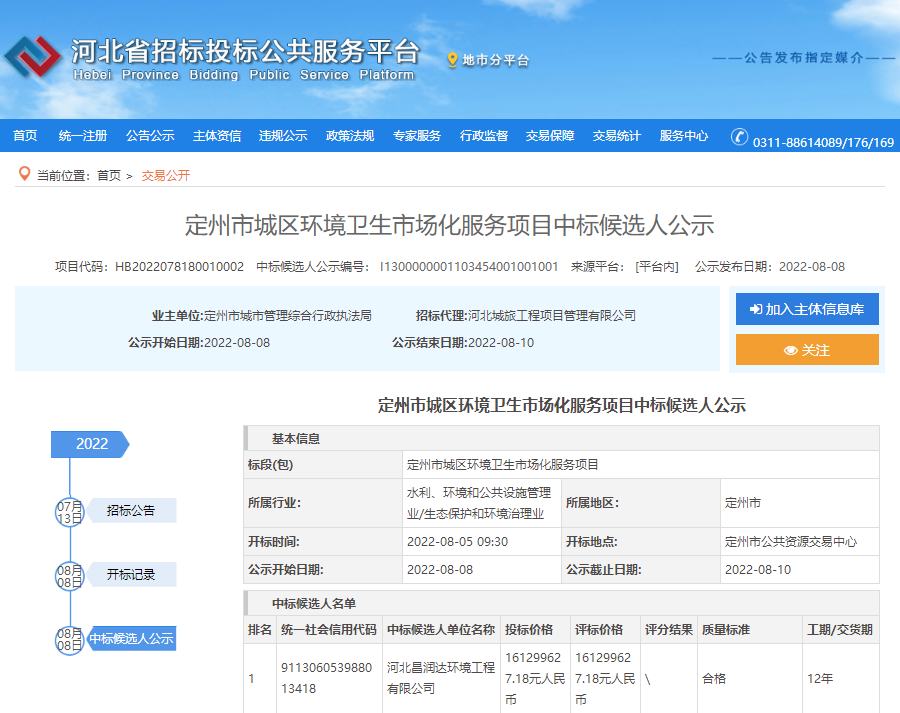 8月8日,超19億元的定州市城區(qū)環(huán)境衛(wèi)生市場化服務項目公布中標候選人公示,河北昌潤達環(huán)境工程有限公司排名第一;8月9日,約5.5億元三河市城鄉(xiāng)環(huán)衛(wèi)一體化項目又被北京環(huán)境有限公司和北京首創(chuàng)環(huán)境投資有限公司攜手斬獲。至此,河北省今年已開標的億級環(huán)衛(wèi)項目總金額已超119億元,加上在招標項目,河北省今年環(huán)衛(wèi)...