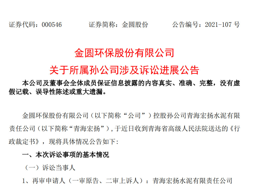 因?yàn)?萬(wàn)元的環(huán)保處罰,導(dǎo)致3655萬(wàn)元稅收優(yōu)惠沒(méi)有了,是不是有點(diǎn)因小失大?2021年12月29日,金圓環(huán)保股份有限公司(下稱“金圓股份”)發(fā)布公告,宣布了一起所屬孫公司青海宏揚(yáng)水泥有限責(zé)任公司(下稱“青海宏揚(yáng)”)涉及訴訟的進(jìn)展,青海宏揚(yáng)要求確認(rèn)環(huán)保處罰無(wú)效的再審申請(qǐng)被法院駁回。這意味著,經(jīng)歷了一審、...
