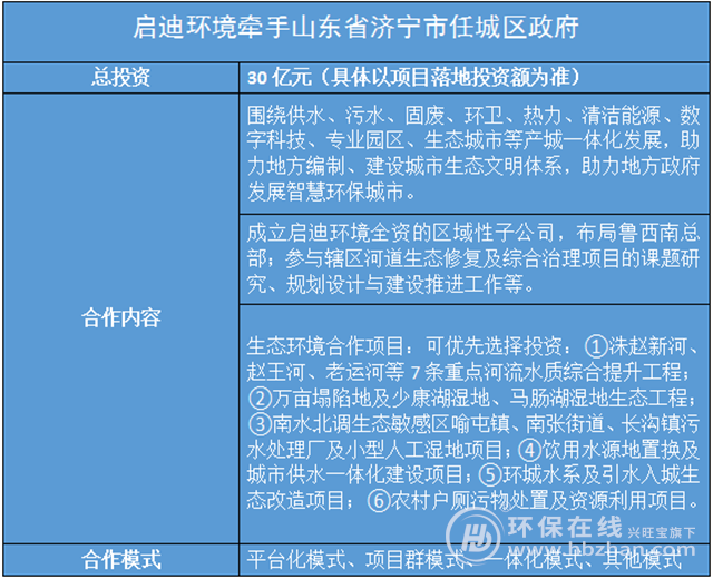 近日,啟迪環(huán)境公告稱公司與山東省濟(jì)寧市任城區(qū)政府簽署合作框架協(xié)議,雙方將對生態(tài)體系建設(shè)重點(diǎn)項(xiàng)目進(jìn)行合作,包括河流水質(zhì)綜合提升工程、濕地生態(tài)工程、飲用水源地置換及城市供水一體化建設(shè)項(xiàng)目等6個(gè)生態(tài)環(huán)境項(xiàng)目,預(yù)計(jì)總投資約30億元。具體如下圖: 任城區(qū)是山東濟(jì)寧市的核心區(qū),能源富集,產(chǎn)業(yè)發(fā)達(dá),目前正籌備構(gòu)建...
