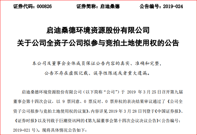 2019年3月28日,啟迪桑德環(huán)境資源股份有限公司(下文簡稱“啟迪桑德”)發(fā)布公告,公司全資子公司宜昌桑德置業(yè)有限公司為滿足未來業(yè)務(wù)發(fā)展及辦公需要,擬以自有或自籌資金參與競拍宜昌市自然資源和規(guī)劃局以掛牌方式出讓宜土網(wǎng)(2019)9 號地塊的國有建設(shè)用地使用權(quán)。 公告顯示,地塊...