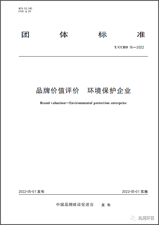 《品牌價值評價 環(huán)境保護(hù)企業(yè)》團(tuán)體標(biāo)準(zhǔn) T/CCBD16-2022正式發(fā)布實施! 2022年5月1日,在中國品牌建設(shè)促進(jìn)會的指導(dǎo)下,由河北先河環(huán)保科技股份有限公司等15家企業(yè)共同參與并制定的《品牌價值評價 環(huán)境保護(hù)企業(yè)》團(tuán)體標(biāo)準(zhǔn)T/CCBD 16-2022于2022年5月1日正式發(fā)布實施。 該標(biāo)準(zhǔn)基...