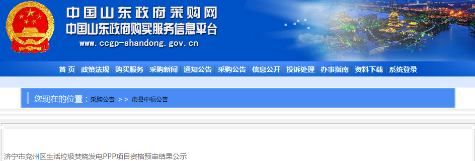 中國環(huán)聯(lián)網(wǎng)獲悉,11月27日,山東省濟寧市兗州區(qū)生活垃圾焚燒發(fā)電PPP項目發(fā)布資格預審結果公告。合格的申請人包括光大國際聯(lián)合體等三家企業(yè),具體名單如下:11月5日,該項目啟動資格預審,根據(jù)公告顯示,項目概況如下:建設內容和建設規(guī)模:本項目為濟寧市兗州區(qū)生活垃圾焚燒發(fā)電PPP項目,建設日處理垃圾150...
