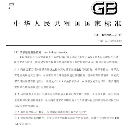 2020年6月1日《危險(xiǎn)廢物填埋污染控制標(biāo)準(zhǔn)》修訂版GB18598-2019正式實(shí)施,針對防滲檢測提出了具體要求如下: 填埋場鋪設(shè)高密度聚乙烯(HDPE)土工膜是常見的污染控制措施,HDPE膜是隔絕污染物的主要屏障,在整個(gè)污染控制措施的重要性不言而喻。在HDPE膜鋪設(shè)和填埋場的運(yùn)行過程中,HDPE膜...