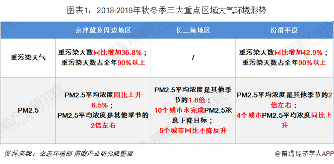 2020年是打贏藍天保衛(wèi)戰(zhàn)三年行動計劃的關(guān)鍵年,為抵消不利氣象條件帶來的負面影響,生態(tài)環(huán)境部表示2019年將以更大力度推進秋冬季大氣污染綜合治理,為堅決打贏藍天保衛(wèi)戰(zhàn)奠定堅實基礎(chǔ)。 重點區(qū)域大氣環(huán)境形勢依然嚴峻 根據(jù)生態(tài)環(huán)境部統(tǒng)計數(shù)據(jù),2018-2019年秋冬季,我國三大重點區(qū)域(京津冀及周邊地區(qū)、...