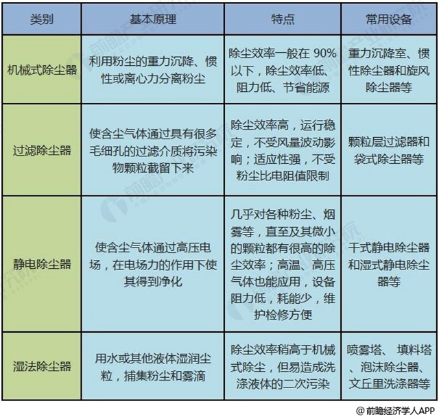 除塵設(shè)備行業(yè)基本概況分析:定義、分類 除塵設(shè)備是指把粉塵從煙氣中分離出來的設(shè)備,是大氣污染控制應(yīng)用最多的設(shè)備,也是除塵工程中最重要的設(shè)備,也被稱為除塵器。 根據(jù)工作原理分類,除塵器可分為靜電式除塵器、袋式除塵器、濕式除塵器及旋風除塵器等。其中,靜電式除塵器除塵效率高、運行費用較低,但設(shè)備龐大、占地面...