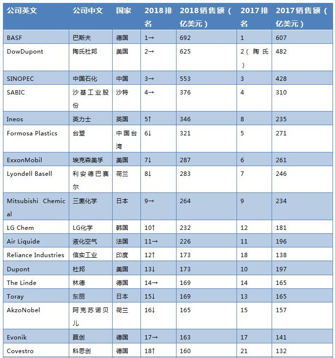 美國化學(xué)學(xué)會(AmericanChemicalSociety,ACS)旗下《化學(xué)與工程新聞》雜志(Chemical&EngineeringNews,C$EN)發(fā)布2018年度全球化工50強(qiáng)(C&EN’SGlobalTop50ChemicalCompanies)榜單,德國BASF公司連...