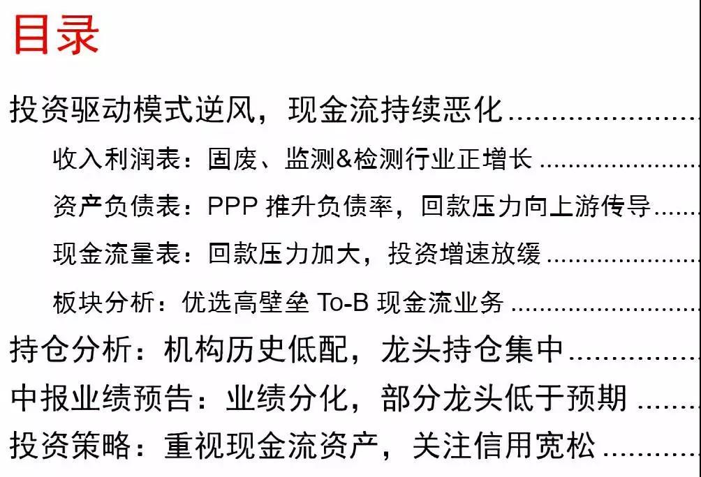 報(bào)告要點(diǎn)收入利潤表:固廢、監(jiān)測&檢測行業(yè)正增長2018H1營收1,086億,同比增11.3%;扣非歸母凈利95.7億,同比降16.5%;毛利率同比降0.3pct至29.2%??鄯菤w母凈利增速排序?yàn)楣虖U(25.7%)、監(jiān)測&檢測(14.1%)、水(工程設(shè)備)(5.7%)、水務(wù)運(yùn)營(-1...