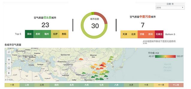 在全國(guó)這些大城市中,哪個(gè)最好?哪個(gè)又最差?分析師TiffanyHuang分析了中國(guó)大陸30個(gè)省會(huì)及直轄市的在2014年至2016年三年來的值,這是一個(gè)用來描述空氣質(zhì)量的指數(shù),數(shù)值越高,表征顏色越深,說明狀況越嚴(yán)重。這些數(shù)據(jù)由優(yōu)閱達(dá)大數(shù)據(jù)生態(tài)(微信公眾號(hào):dkmeco)進(jìn)行了可視化處理。根據(jù)美國(guó)環(huán)境保...