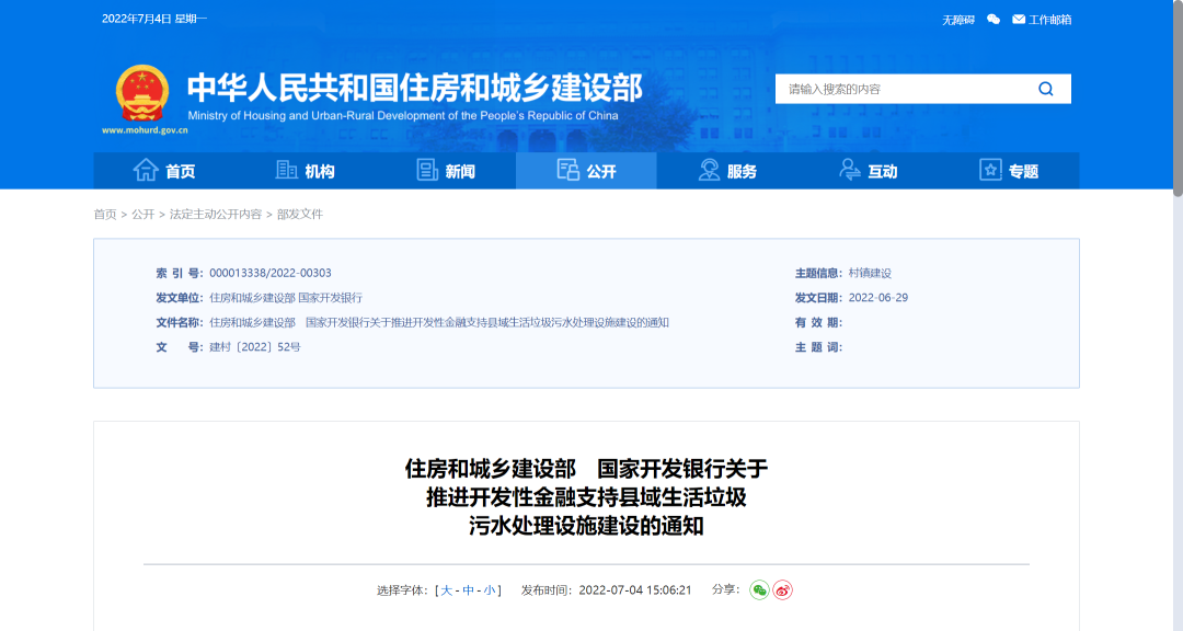縣域生活垃圾污水處理設(shè)施建設(shè)“錢”的問題,終于有了解決方案。 7月4日,住房和城鄉(xiāng)建設(shè)部、國家開發(fā)銀行聯(lián)合發(fā)布《關(guān)于推進(jìn)開發(fā)性金融支持縣域生活垃圾污水處理設(shè)施建設(shè)的通知》(下稱《通知》),對縣域生活垃圾污水處理設(shè)施建設(shè)給出金融支持。 具體來講,未來如果是納入項目儲備庫的項目,...