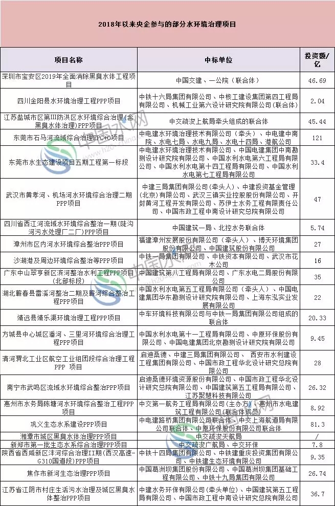 中國水網(wǎng)盤點2018年以來的水環(huán)境項目時發(fā)現(xiàn),有不少“中”字頭的央企、國企相當(dāng)活躍,而且所參與的項目大多是幾十億,甚至上百億的水環(huán)境治理項目。中國水網(wǎng)根據(jù)公開資料不完全統(tǒng)計2018年以來國企、央企參與的22個水環(huán)境治理項目,項目投資額累計約656.22億。 根據(jù)公開資料不完全...