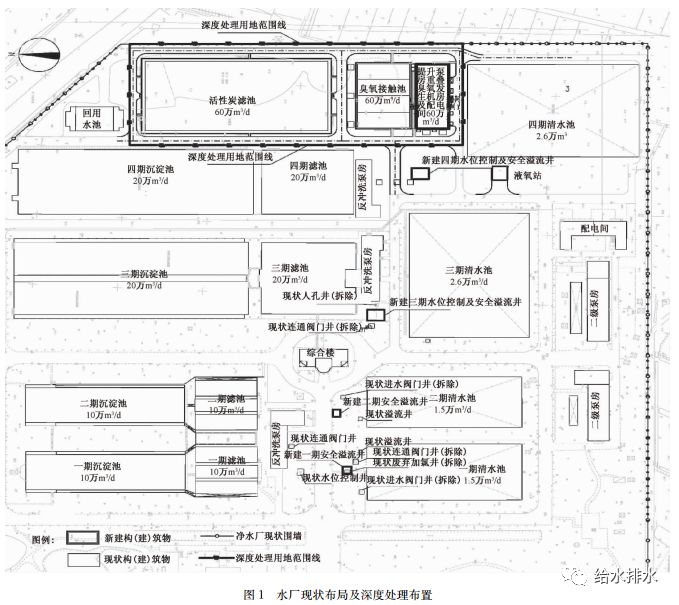 針對60萬m3/d老廠深度處理改造用地偏居廠區(qū)一側(cè),平行于原有四期常規(guī)處理流程的建設(shè)條件,在改造中除了要重點(diǎn)考慮各期常規(guī)處理出水獨(dú)立性和清水池進(jìn)水均衡控制的問題,大規(guī)模中間提升泵房前池的調(diào)蓄需求,前后流量的銜接和安全溢流等深度處理改造中常見的問題該如何解決?1 項(xiàng)目背景M水廠基本能達(dá)到《標(biāo)準(zhǔn)》(GB...
