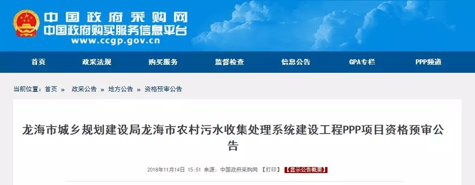 11月14日,中國水網(wǎng)從中國政府采購網(wǎng)獲悉,龍海市農(nóng)村污水收集處理系統(tǒng)建設(shè)工程PPP項(xiàng)目發(fā)布資格預(yù)審公告,總投資為211836.86 萬元。 項(xiàng)目建設(shè)內(nèi)容及規(guī)模: 合同包一:龍海市農(nóng)村污水收集處理系統(tǒng)建設(shè)工程(榜山鎮(zhèn)、海澄鎮(zhèn)、東園鎮(zhèn)、紫泥鎮(zhèn))PPP項(xiàng)目(項(xiàng)目總投資金額為118400.1萬元) 包括榜...