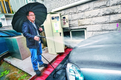 昨天下午,在北京市水科學(xué)技術(shù)研究院院內(nèi),研究人員正在演示自助的使用。(鄧偉攝)收集屋頂雨水,經(jīng)過凈化后暫時(shí)儲(chǔ)存,并利用太陽能帶動(dòng)水泵洗車。這是由北京市水科學(xué)技術(shù)研究院自主研發(fā)的一項(xiàng)“黑科技”——自助雨水洗車機(jī)。目前,已有多臺(tái)設(shè)備在本市學(xué)校、醫(yī)院試點(diǎn)安裝。昨天秋雨綿綿,記者來到位于車公莊西路的北京市水...
