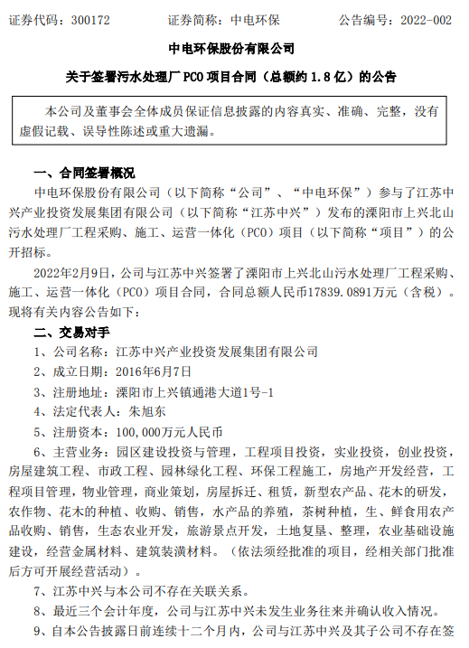 2022年2月10日,中電環(huán)保發(fā)布公告稱公司中標(biāo)并簽署了溧陽(yáng)市上興北山污水處理廠工程采購(gòu)、施工、運(yùn)營(yíng)一體化(PCO)項(xiàng)目合同,合同總額約人民幣1.8億元。(詳情見:中電環(huán)保:以近1.8億中標(biāo)溧陽(yáng)市上興北山污水處理廠工程采購(gòu)、施工、運(yùn)營(yíng)一體化(PCO)項(xiàng)目) 項(xiàng)目主要建設(shè)內(nèi)容:處理廠廠內(nèi),包括:污水處...