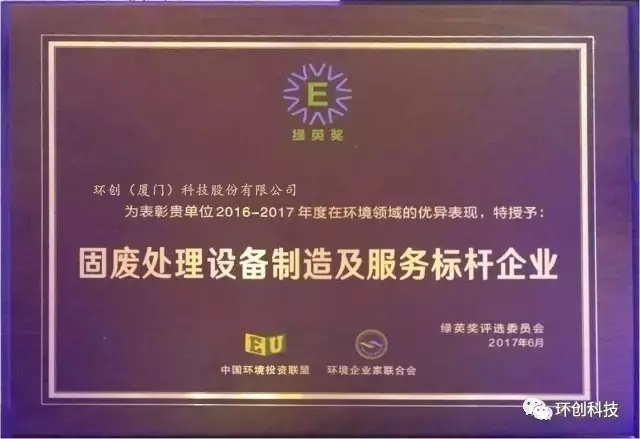 2017年6月8日下午,第十屆中國(guó)環(huán)境產(chǎn)業(yè)大會(huì)在北京召開,環(huán)創(chuàng)科技憑借在固廢處理設(shè)備制造行業(yè)成熟先進(jìn)的技術(shù),及優(yōu)秀的產(chǎn)品質(zhì)量和服務(wù)質(zhì)量,榮獲大會(huì)隆重頒發(fā)“綠英獎(jiǎng)”暨“固廢處理設(shè)備制造及服務(wù)標(biāo)桿企業(yè)”榮譽(yù)稱號(hào)。作為中國(guó)環(huán)境產(chǎn)業(yè)研究的權(quán)威機(jī)構(gòu),第十屆中國(guó)環(huán)境產(chǎn)業(yè)大會(huì)由清華大學(xué)環(huán)境學(xué)院和中國(guó)環(huán)境企業(yè)家聯(lián)合...