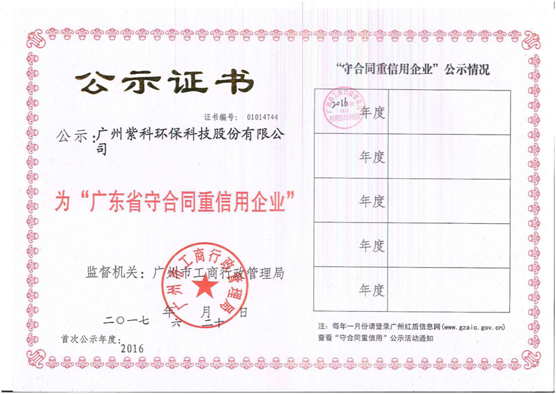近日,順利通過(guò)省工商行政管理局評(píng)審,獲得2016年度廣東省“守合同重信用企業(yè)”,此舉肯定了紫科環(huán)保誠(chéng)信守約經(jīng)營(yíng)、信用文化建設(shè)與良好的客戶口碑?!皬V東省守合同重信用企業(yè)”獲評(píng)企業(yè),均為有實(shí)力的誠(chéng)信標(biāo)桿企業(yè)。它是由廣東省工商行政管理局評(píng)定頒發(fā)的,用于鼓勵(lì)企業(yè)加強(qiáng)合同和信用管理,促進(jìn)當(dāng)?shù)仄髽I(yè)信用體系建設(shè)。...