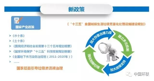 一、垃圾滲瀝液處理現(xiàn)狀新政策《全國(guó)地下水污染防治規(guī)劃(2011-2020年)》、《水十條》、《國(guó)民經(jīng)濟(jì)和社會(huì)發(fā)展第十三個(gè)五年規(guī)劃綱要》、《國(guó)家環(huán)境保護(hù)“十三五”科技發(fā)展規(guī)劃綱要》中均明確指出對(duì)于城鎮(zhèn)生活垃圾填埋場(chǎng)要及時(shí)開(kāi)展?jié)B瀝液引流,做好垃圾滲瀝液處理處置、開(kāi)發(fā)地下水源地污染源控制技術(shù)工作。新形勢(shì)垃...