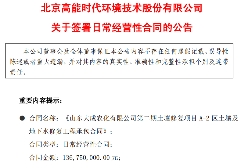 中國(guó)水網(wǎng)獲悉,5月22日,北京高能時(shí)代環(huán)境技術(shù)股份有限公司(以下簡(jiǎn)稱(chēng)“高能環(huán)境”或“公司”)發(fā)布公告稱(chēng),公司于近日簽署《山東大成農(nóng)化有限公司第二期土壤修復(fù)項(xiàng)目 A-2 區(qū)土壤及地下水修復(fù)工程承包合同》,合同金額月1.37億。據(jù)悉,工程內(nèi)容包括編制完整的修復(fù)工程施工方案,經(jīng)專(zhuān)家評(píng)審后,報(bào)淄博市環(huán)保局備...