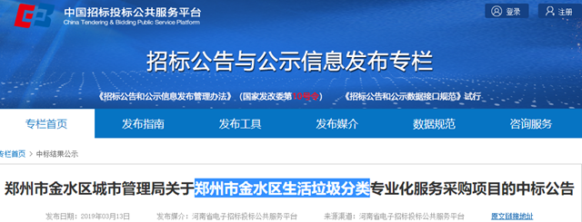 鄭州市金水區(qū)生活垃圾分類專業(yè)化服務(wù)采購項目發(fā)布中標(biāo)公告,浙江聯(lián)運環(huán)境工程股份有限公司獲得包一,中標(biāo)金額354.87萬,合同期限為1年。 中標(biāo)信息具體如下: 相關(guān)新聞: 497萬/年,聯(lián)運環(huán)境中標(biāo)安徽銅陵轄區(qū)居民小區(qū)生活垃圾分類項目 聯(lián)運環(huán)境中標(biāo)浙江上虞垃圾分類項目 聯(lián)運環(huán)境2100萬中標(biāo)合肥市瑤海區(qū)...