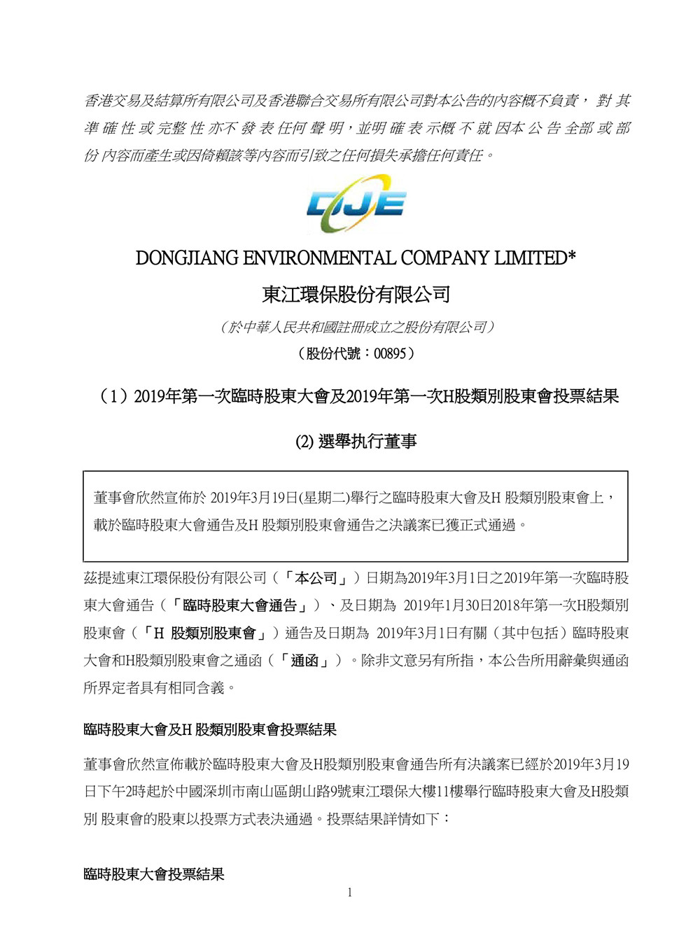 東江環(huán)保發(fā)布公告,于2019年3月19日舉行2019年第一次臨時股東大會上,選舉姚曙為公司第六屆董事會執(zhí)行董事,任期將自2019年第一次臨時股東大會審議通過之日起生效,至公司第六屆董事會任期屆滿。原標(biāo)題:東江環(huán)保(00895)選舉姚曙為執(zhí)行懂事